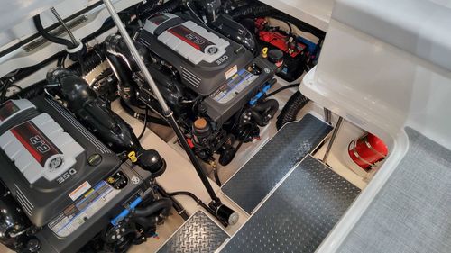 The MerCruiser 6.2L MPI Motors are no mere accessory in this versatile vessel. Engineered for steadfast reliability and unprecedented speed, these powerplants assure you of a stunningly swift glide over water. Observe how nimbly yet smoothly this vessel responds to your command as you skim over waves and bay waters. All the while, the motors run efficiently to keep your fuel expenditure at a manageable level.