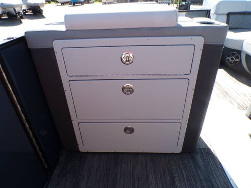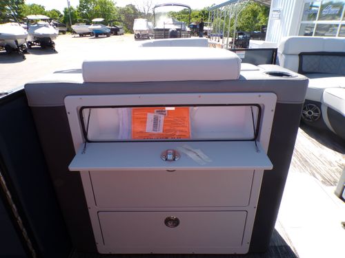 The AquaPatio 255 SFL Impact features a distinct, elegant exterior styling combined with a spacious interior layout, exuding both charm and functionality. Its design ensures you enjoy not only an excellent time on the water but also the admiring glances of onlookers when you dock.