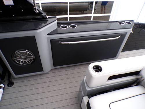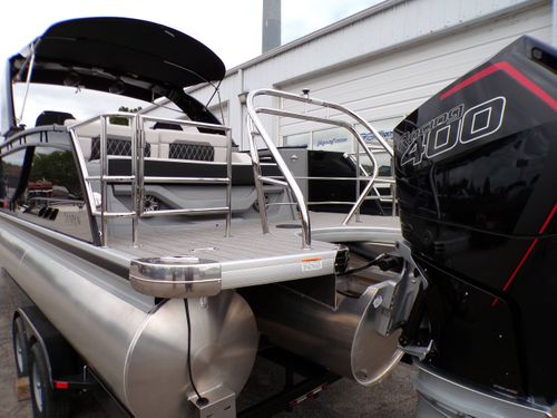 This luxurious model also includes the Godfrey Impact Plus Tritoon Package, enhancing stability and speed for a smooth, comfortable ride. This design enhances overall performance and fuel efficiency, ensuring you can enjoy longer trips and explore distant horizons. It also improves the boat's balance, making onboard activities more enjoyable.