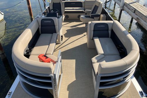 The Cruiser delivers everything you and your family want in a pontoon boat without sacrificing quality, comfort or functionality. Soft-touch fabric wraps the roomy furniture—including a reclining captain’s chair. Generous storage can be found throughout the deck, and Harris’s remarkable RPM Technology provides optimized performance, easy maneuverability, and a smooth, quiet ride. You can also choose from multiple layouts and colors to make the Cruiser perfect for you and your crew.