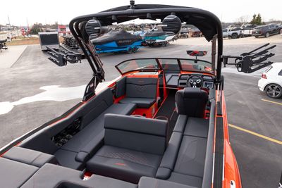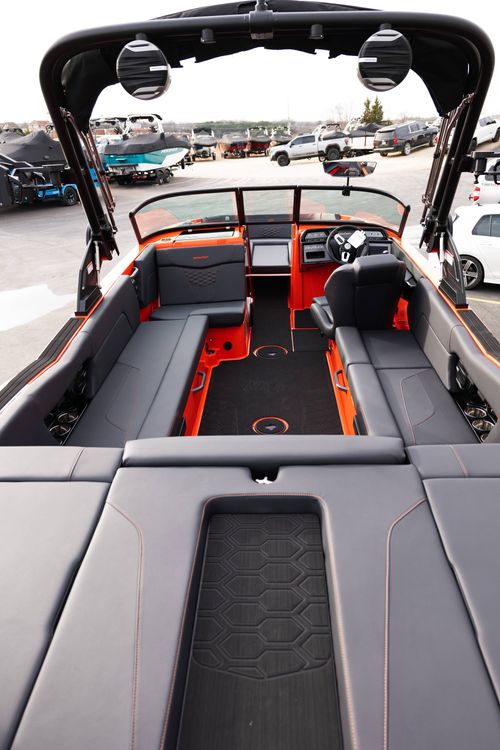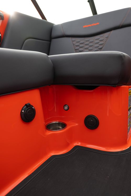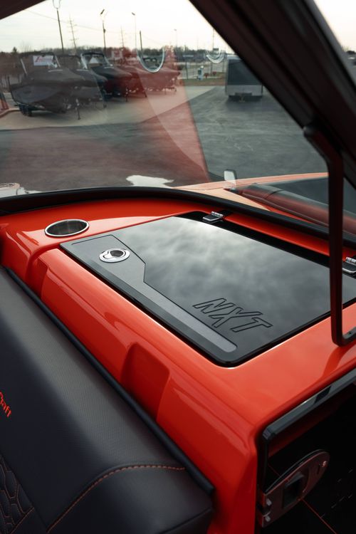 All-new 2026 MasterCraft NXT24 in SUNSET ORANGE & BLACK over CoolFeel BLACK—clean, modern, and fully equipped. Powered by the Ilmor 5.3L GDI HO with SurfStar and DockStar for confident handling and a dialed-in surf wave. Inside you get SeaDek flooring, convertible center rear seat, acrylic walk-through door, and tons of storage. The Z6 tower carries dual M80 cans and clamping racks, backed by Meridian amps, second sub, transom remote, and lighted speakers. Dual batteries with onboard charger, high-altitude prop, engine flush, over-tower cover, bimini, and Flint Gray swim platform round it out. Includes color-matched tandem-axle trailer with Eagle wheels and spare. Turn-key NXT24 that’s surf-ready and lake-ready. Instagram reel caption (short) 2026 NXT24 in SUNSET ORNAGE & BLACK ?? SurfStar + DockStar, Ilmor 5.3 HO, Z6 tower w/ M80 cans, BLACK CoolFeel + SeaDek. Clean. Quiet. Surf-ready. #MasterCraft #NXT24 #LakeOfTheOzarks #WakeSurf #PerformanceMarine Quick specs to highlight in-store or in DMs Engine: Ilmor 5.3L GDI HO 380hp.