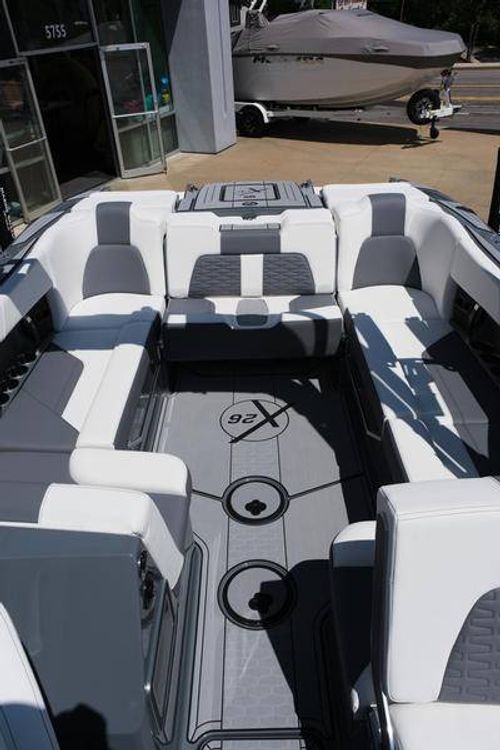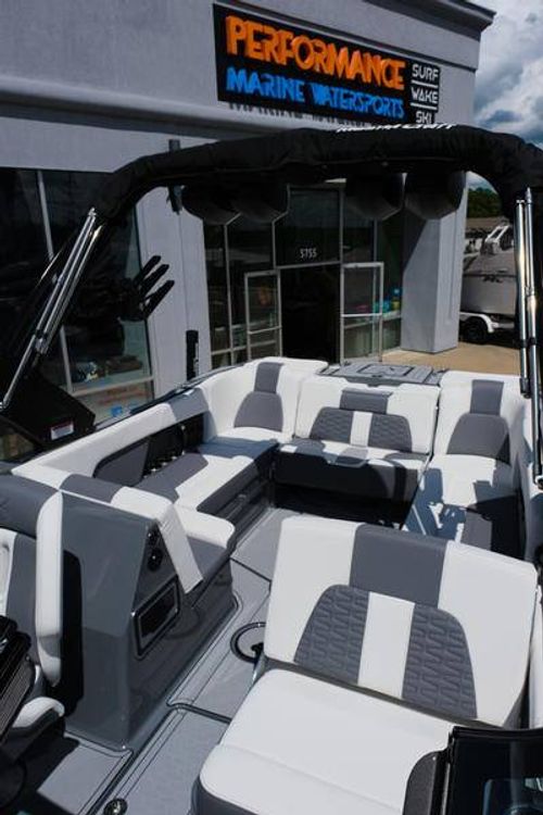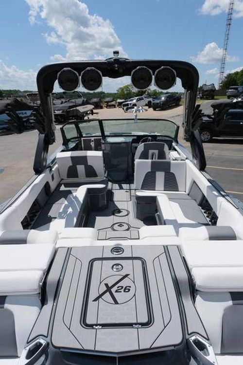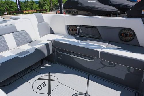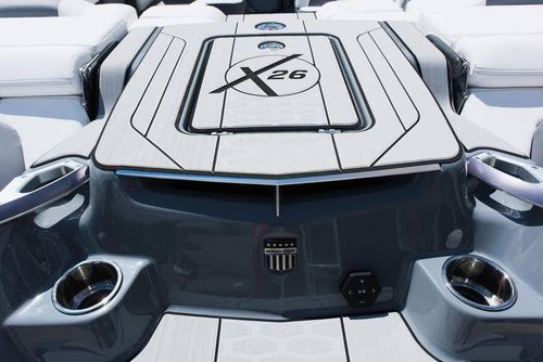 The definition of luxury that rips—meet the one and only X26. This 26-foot, yacht-certified towboat provides a premium experience at every touch point. With its incredible behind-the-boat performance, a contemporary and elegant helm design, and a plethora of luxurious amenities, the X26 commands attention. Offering seating for 18, standard telematics, SurfStar technology, and options like a stern thruster and a refrigerator, there is no other towboat on the market that is as powerful, premium, and loaded as the X26.