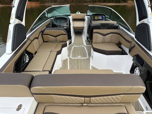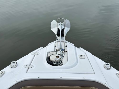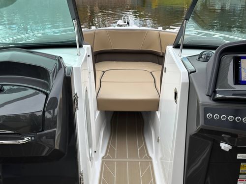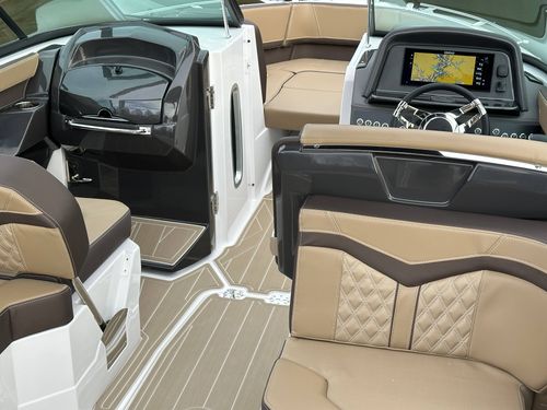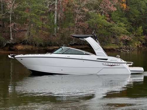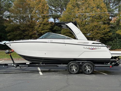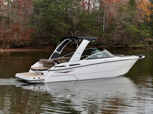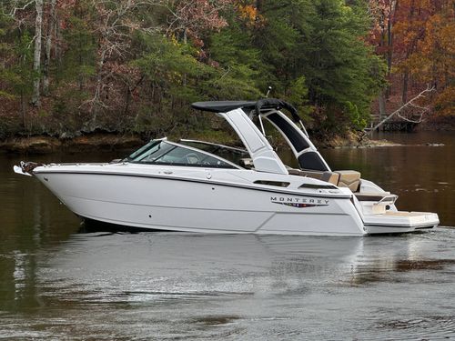 Classic Luxury Level Cruiser, LOADED with high-end level conveniences and all the 2025 MY updates to the SS line from Monterey boats. HUGE Simrad display with charting capability and integrated vessel data. Be the envy of all your friends at party cove when you pull up and drop anchor with a push of a button!