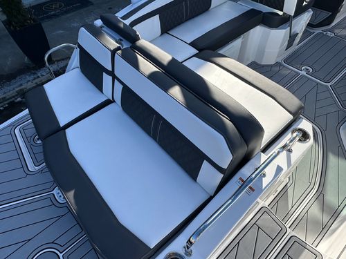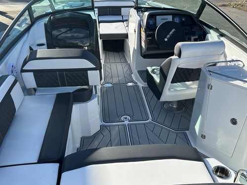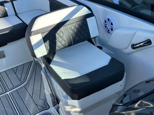 Nimble and Sporty best describes the Monterey M4. Featuring a standard wet bar sized just right for preparing a drink, or a quick snack, spacious seating, and generous dedicated storage areas, the M4 is ahead of the curve. Additional standard features include a stainless steel telescopic boarding ladder for easy access in and out of the water, a small head compartment which is located behind the port side dash, and a fusion satellite ready stereo.