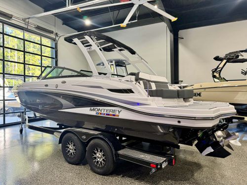 Elevate your boating experience with our spectacular 2025 Monterey M4. As one of the industry's leading models, this watercraft offers an unbeatable balance between comfort, practicality, and power. The Monterey M4 is a superb cruising vessel, ideal for entertaining, fishing, tubing, or simply relaxing on the open water. Furnished with modern design, advanced technologies, and high-performance capabilities, the M4 is a boat that truly stands out.