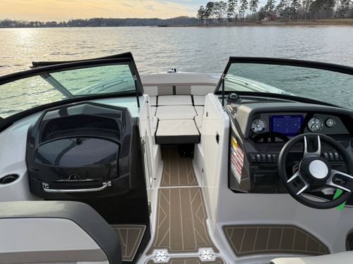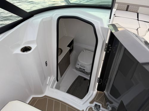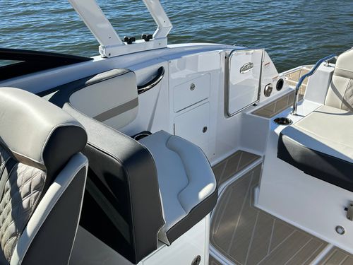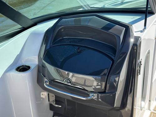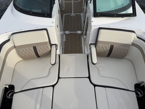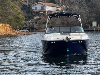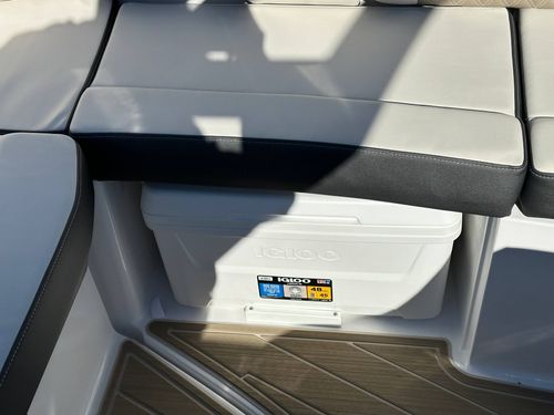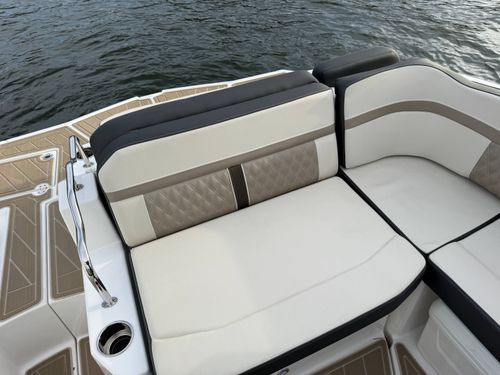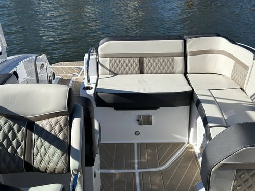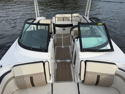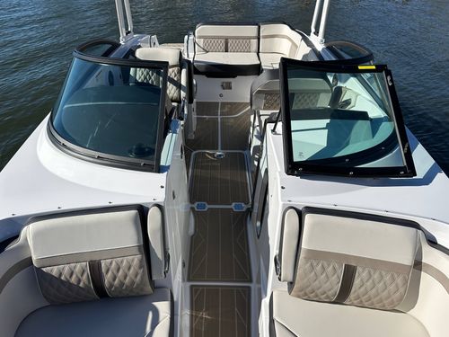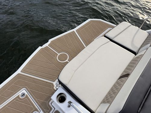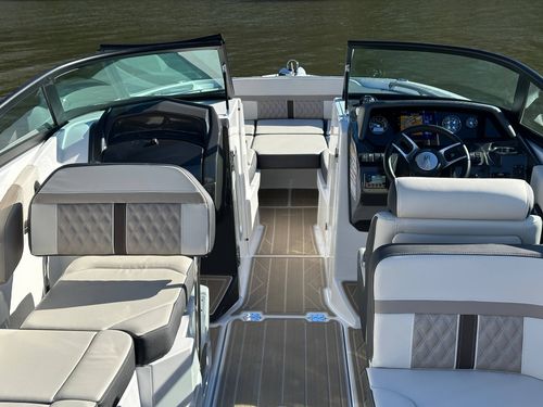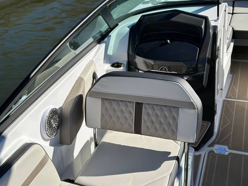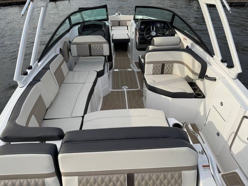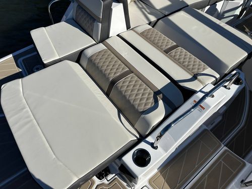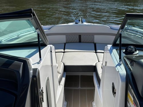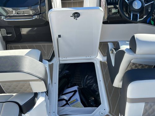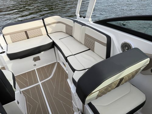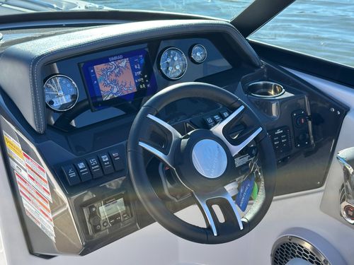 The M6 has everything you’ll need to enjoy a full day of cruising, skiing, wakeboarding and tubing. Featuring spacious seating and storage options, a spacious head compartment, two recessed and telescoping boarding ladders located in the bow and stern, and a Fusion satellite ready AM/FM stereo complete with 10" subwoofer and HLCD based tower speakers. You'll have everything you need to enjoy your time-out on the water. With the standard signature graphics and colored hull, you’re sure to have one of the sharpest boats on the water. The M6 is style, luxury and performance personified!