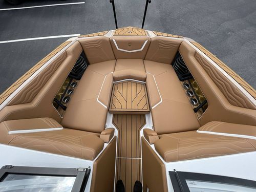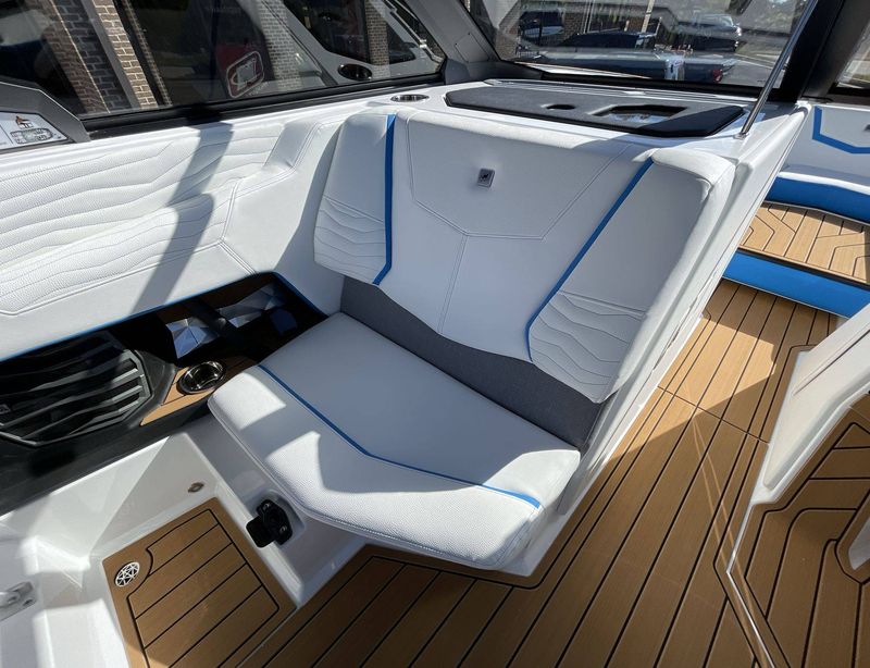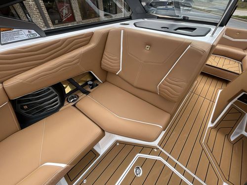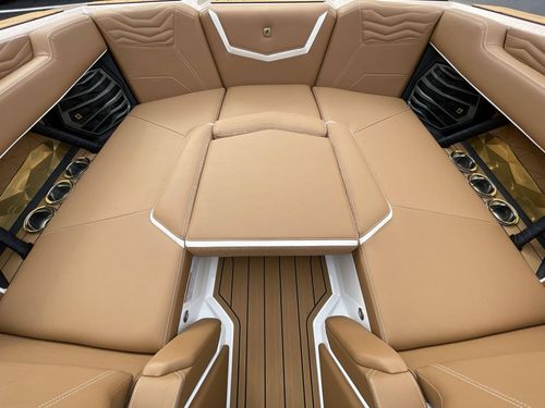Inside the 2025 Nautique G23, you'll find extravagant comfort and state-of-the-art technology. Leather-trimmed seating provides enough space for you and your entire crew, while the helm features user-friendly touch screens that make it simple to manage every aspect of the boat's performance. The high-end sound system, versatile storage options, and convenient refreshment center makes every ride an unforgettable journey.