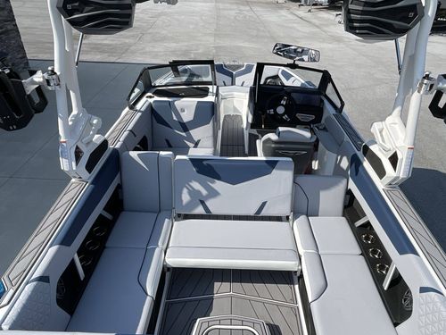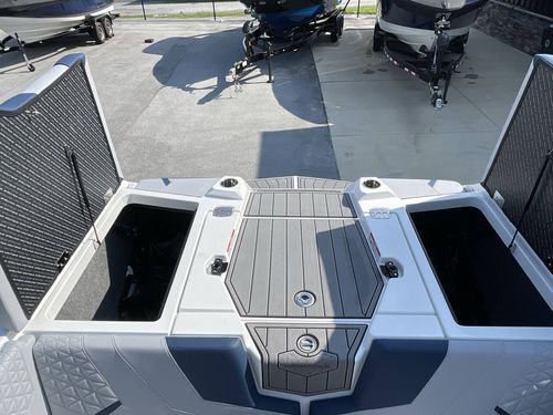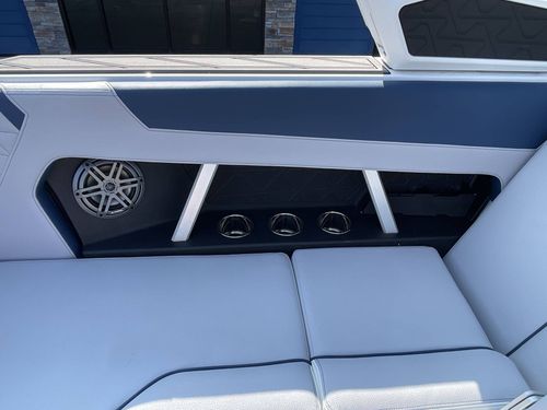 Some of the customizable options include Ballast - Supplemental (Additional 500 LBS) Ballast, a Heater with Defroster, Lights - Docking/Daytime Running Light, Lights - Underwater for a majestic visual effect, LINC Panoray - Navionics Maps, a Ski Pylon - Retractable Pylon, and a state-of-the-art Wireless Charging feature for your gadgets.