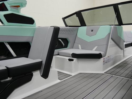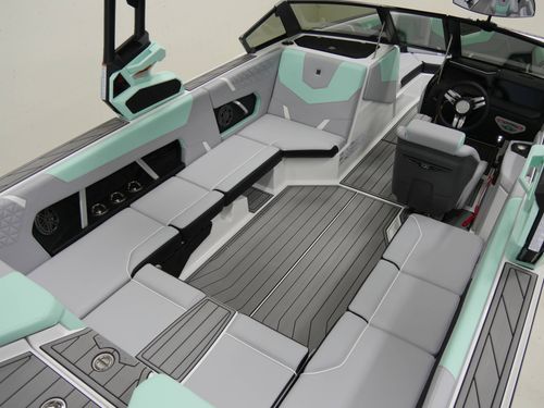 STANDARD FEATURES: Nautique Configurable Running Surface, Nautique LINC Panoray with Helm Control, Zero Off GPS Speed Control, Flight Control Tower w/ Rotating Board Racks, Nautique Surf System with WAVEPLATE & Surf Pipe Exhaust, Freshwater Engine Flush System, Wake Package(Ballast 2400lbs), Centennial Package (Chromax, Steering Wheel, Glovebox, Non-Skid), Stereo JL Audio M3 Serries (Stereo, 2 Channel Amp, 4 M3 Speakers), LED Courtesy Lighting, Cleats (4), Removable Cooler, Waste Receptacle, Flip-Up Lounge Seats, MyNautique Connectivity Platform, Premium Mirror.