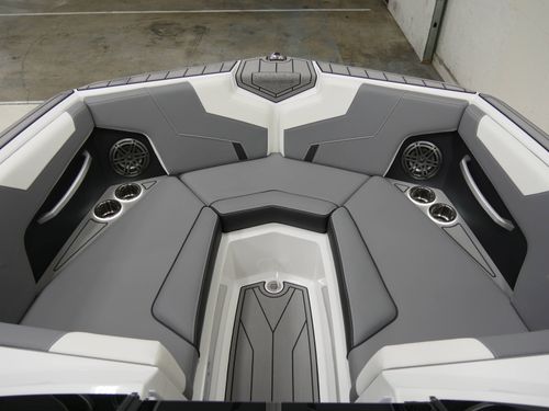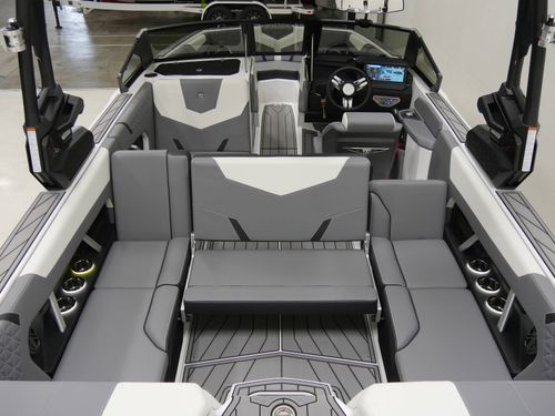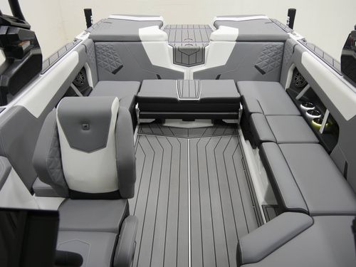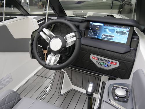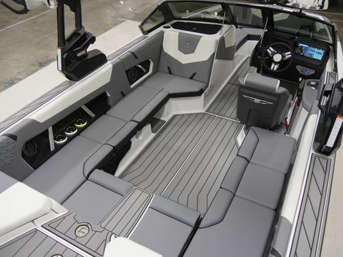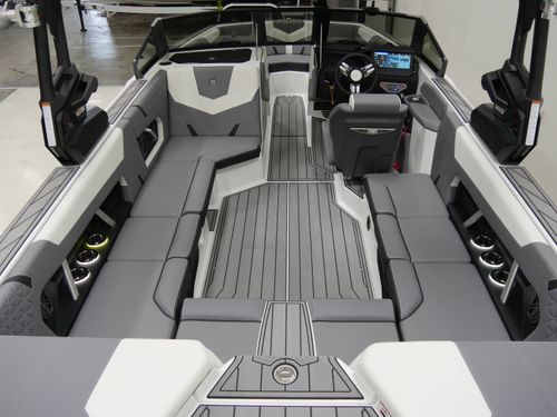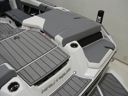 STANDARD FEATURES: Nautique Configurable Running Surface, Nautique LINC Panoray with Helm Control, Zero Off GPS Speed Control, Flight Control Tower w/ Rotating Board Racks, Nautique Surf System with WAVEPLATE & Surf Pipe Exhaust, Freshwater Engine Flush System, Wake Package(Ballast 2400lbs), Centennial Package (Chromax, Steering Wheel, Glovebox, Non-Skid), Stereo JL Audio M3 Serries (Stereo, 2 Channel Amp, 4 M3 Speakers), LED Courtesy Lighting, Cleats (4), Removable Cooler, Waste Receptacle, Flip-Up Lounge Seats, MyNautique Connectivity Platform, Premium Mirror.