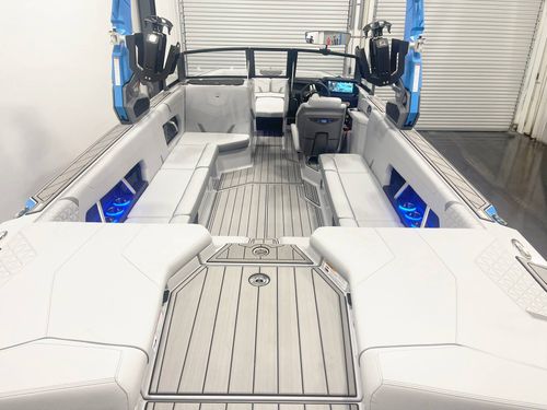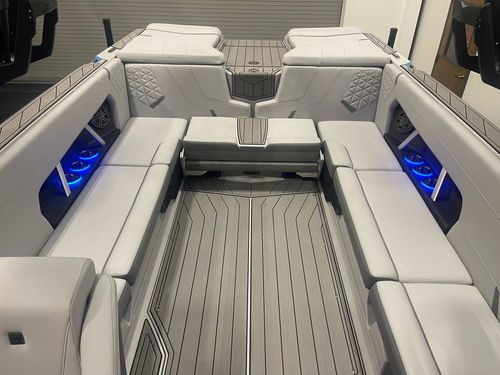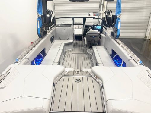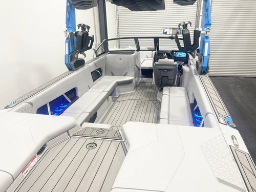 Providing massive interior space for friends, family and gear, the GS24 is the largest multi-sport towboat in the Nautique line. At 24-feet, this beautifully appointed waterski, wakesurf and wakeboard boat can outperform any other multi-sport boat in its class, delivering incredible performance at the touch of a button. Want to please anyone who comes aboard? The GS24 can do just that with its 2,500 pounds of integrated internal ballast, Ski Assist feature and h