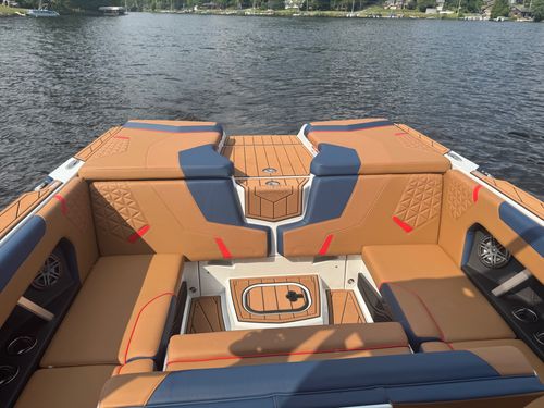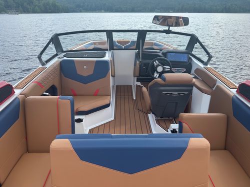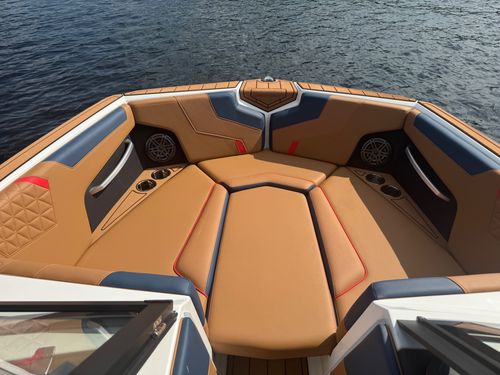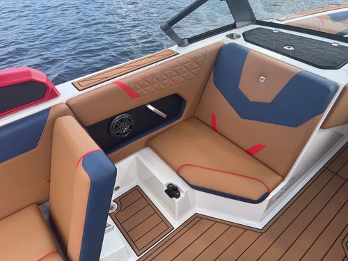 Stepping inside the Nautique GS24, you will be greeted with spacious seating, premium finishes, and easy access to storage. The boat's ergonomic design focuses on comfort and functionality, ensuring a delightful experience for all passengers.