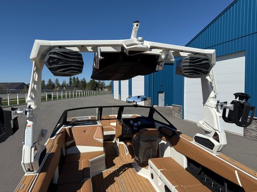 The 2025 Super Air Nautique S23 is a bold, modern wake boat built for riders who demand top-tier performance and premium comfort. At 23 feet long with room for up to 16 people, the S23 delivers massive, customizable wakes and waves thanks to Nautique’s advanced Surf System and up to 3,150 pounds of supplemental ballast. Powered by a PCM ZZ5 it offers incredible power and responsiveness behind the wheel. The aggressive new hull design turns heads, while the interior features high-end materials, intuitive technology like the LINC Panoray touchscreen, and thoughtful touches throughout. Whether you're surfing, wakeboarding, or just cruising with friends and family, the 2025 S23 blends style, innovation, and functionality into one of the most capable and comfortable boats in its class.