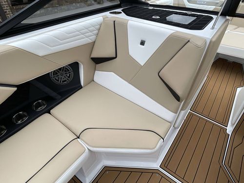 Step aboard the 2025 Nautique S23 and soak in the opulence. The spacious and well-appointed interior offers ample room for relaxation, while the ergonomic seating arrangement ensures utmost comfort during your voyage. Its high-end amenities and stylish design make for a truly enjoyable boating experience.