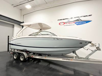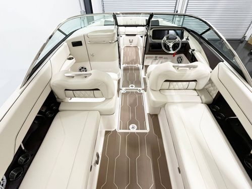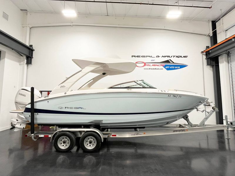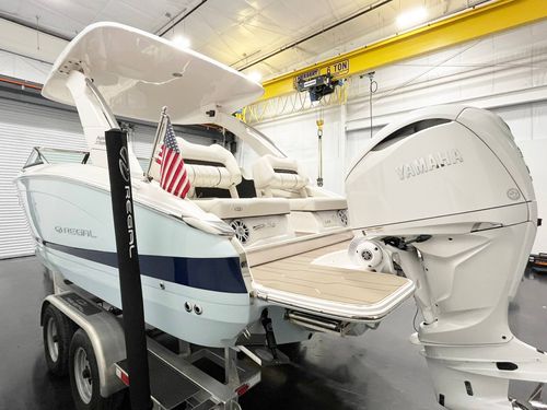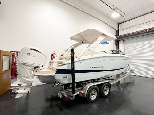 2025 Regal LX6 powered by a Yamaha 350HP engine with only 31 hours! This stunning Belle Isle Blue beauty is loaded with premium options, including an electric toilet with pump-out fittings, underwater and docking lights, trim tabs, bow thruster, anchor windlass (all chain), power hard top, and bow walk-thru doors. Enjoy luxury touches like SeaDek cockpit and swim platform, River Rock interior, teak cockpit table, transom shower with pressure water package, and a stainless steel flag pole with flag. Additional features include the premium package, battery charger, travel storage cover, Grow Boating, and loading charge. This LX6 is in exceptional, like-new condition—ready for the water and adventure!