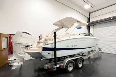 2025 Regal LX6 powered by a Yamaha 350HP engine with only 31 hours! This stunning Belle Isle Blue beauty is loaded with premium options, including an electric toilet with pump-out fittings, underwater and docking lights, trim tabs, bow thruster, anchor windlass (all chain), power hard top, and bow walk-thru doors. Enjoy luxury touches like SeaDek cockpit and swim platform, River Rock interior, teak cockpit table, transom shower with pressure water package, and a stainless steel flag pole with flag. Additional features include the premium package, battery charger, travel storage cover, Grow Boating, and loading charge. This LX6 is in exceptional, like-new condition—ready for the water and adventure!