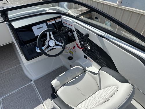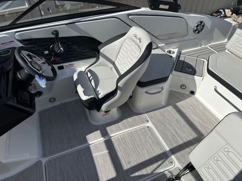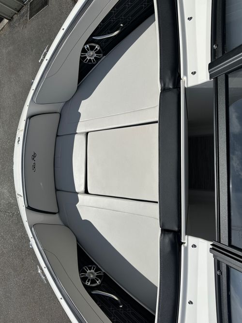 This model is packed with top of the range features like an optional water sports tower, immersive sound system, and advanced Simrad® GO5 touchscreen navigation system. Some other standard specifications include a power steering, stainless-steel handrails and cleats, a large swim platform, and custom Sea Ray instrumentation with a glass gauges.