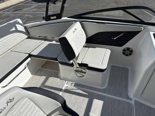 The SPX 210 features an impressive, sleek, and sporty design characteristic of Sea Ray. The boat boasts plush, deep-seating, high-quality upholstery for enhanced comfort on all your adventures. With a spacious, user-friendly layout, this boat offers a sundeck with adjustable backrests, a bucket seat with reversible companion bench, and thoughtful storage solutions. The bold choice of colors enhances the boat's aesthetic appeal.
