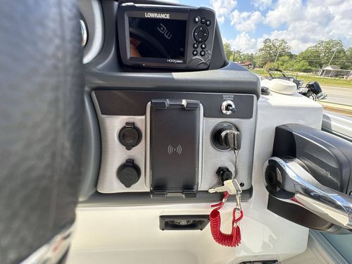 Additional highlights include the integrated Yamaha Mechanical Pre-Rig and a fiberglass helm matched with a Lowrance Hook 5 Display for easy and accurate navigation. Other impressive amenities are the 36" Bench in the port stern area, a HD folding table, and LED lights that ensure both safety and ambiance.