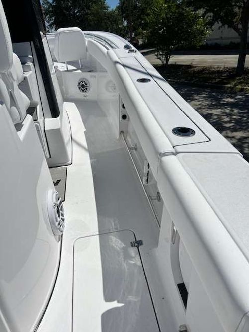 The Open 282 is primed for family fun and comfort for the whole family. Enjoy the versatile dual side entry doors with dual fuel fills, comfortable deep seating throughout and the finely-tuned offshore ride you've come to love from our boats. Just one look at the sleek shear line of this model or the oversized fiberglass hard-top and you'll know you will be ready for whatever lies ahead.