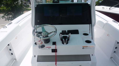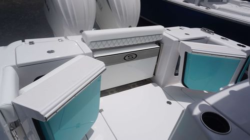 The Open 282 is primed for family fun and comfort for the whole family. Enjoy the versatile dual side entry doors with dual fuel fills, comfortable deep seating throughout and the finely-tuned offshore ride you've come to love from our boats. Just one look at the sleek shear line of this model or the oversized fiberglass hard-top and you'll know you will be ready for whatever lies ahead.