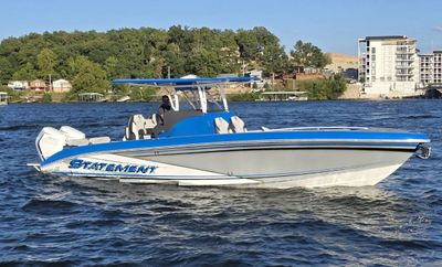Proudly presenting the dynamic Statement 350 Open Center Console performance boat. Powered by your choice of twin or triple Mercury 400R Racing motors, this imposing boat offers an unmatched blend of speed, agility, and elite performance. Whether you are cruising or racing, you will experience an unrivaled feeling of power and precision.