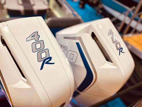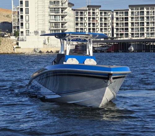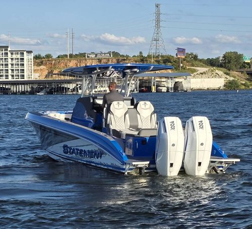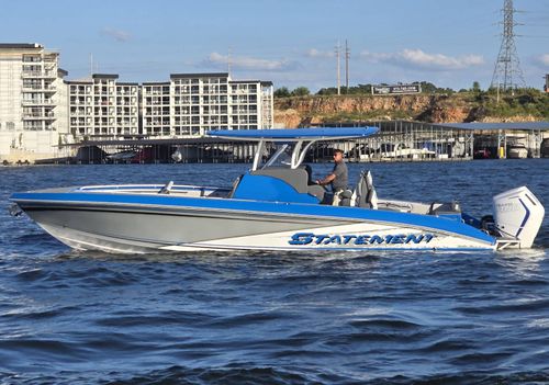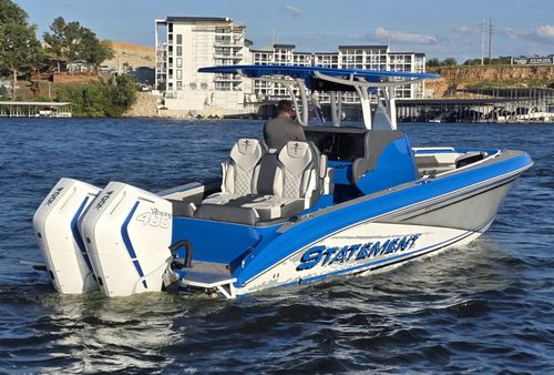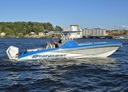 Statement 350 Open Center Console Performance Boat equipped with Twin Mercury 400R Racing Motors