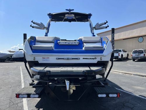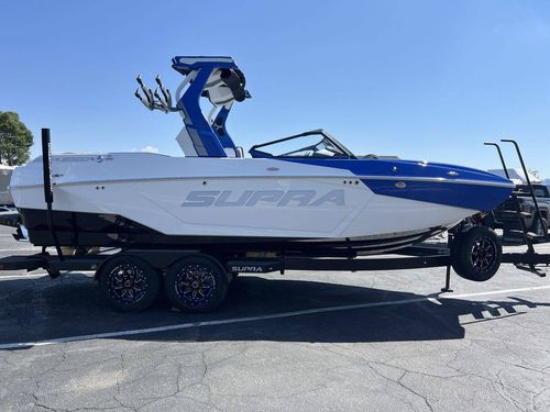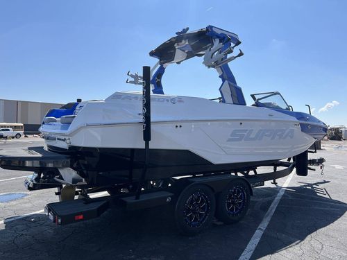 Equipped with a cutting-edge Vision Control System which includes hands-free calling, navigation, and wireless music streaming. It also features FTC (FlexTech Construction) and VBC (Vented Board Changer) for an enduring and safer boating experience. The Supra SA's unique hull design ensures smooth rides and minimal wake impacts, making this boat an excellent choice for wakeboarders and surfers alike.
