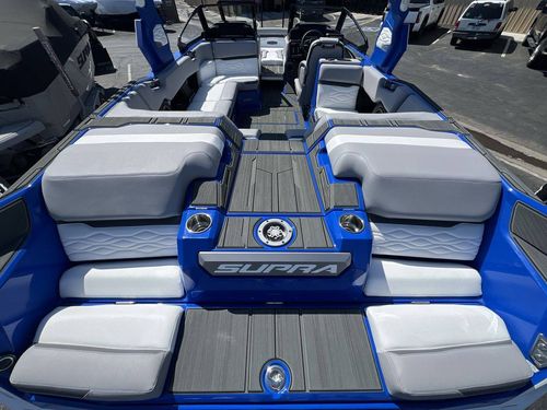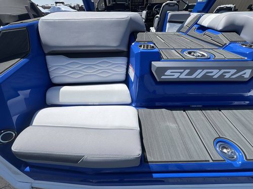 The state-of-the-art interior layout encompasses plush seating, hand-stitched accents, and swanky floors that invite you for an unparalleled boating experience. The Supra SA offers ample storage space and features a lounge with flip-up seat backs, offering everything a boater could dream of for absolute comfort during a day out on the water.