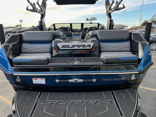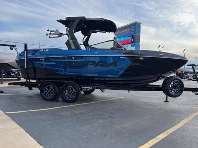 BRAND NEW 2025 SA450 MODEL ALL NEW RE-DESIGN FOR 2025. CHECK OUT THE FEATURES ON THIS STOCK SA450. COLORS ARE STEEL BLUE METAL FLAKE/ BLACK, INTERIOR IS DARK GRAPHITE, OXFORD BLUE, EXTRA OPTIONS ARE: NEW POWER FOLDING BIMINI TOP, ELECTRIC REAR TRANSOM DROP STEP, DUAL STERN THURSTERS, UPGRADED RAPTOR 450 MOTOR, 3 LAYER NON SKID LASER, HEATER, COOLED SEATS DRIVER & PASSENGER, FULL TOWER DOWN COVER W/ SWIMPLATFORM COVER, REAR SUN SHADE OPTION, TOWER SPEAKERS BLACK, STEREO TRANSOM REMOTE, PHENDER PRO CLEATS, ATMOS AIR INFLATOR SYSTEM, PTM EDGE MIRROR UPGRADE, TOWER DOCKING LIGHT UPGRADE AND HULL DOCKING LIGHTS , MIDSHIP LED QAUD BEAM LIGHT, REAR TRANSOM LED LIGHTS, PLUS ALL STANDARD SUPRA FACTORY OPTIONS, BOATMATE TANDEM AXLE HD TRAILER W/ 18" WHEEL UPGRADE, DLX JACK UPGRADE BOW LADDER, SPARE TIRE 18" MATCHING, WHEEL ACCENT COLOR MATCHING, GATOR STEP BUNK UPGRADE KIT, CALL OR TEXT JOE DIRECT 573-216-1338.