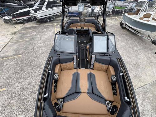Designed with meticulous attention to detail, this tower represents superior engineering, offering enhanced functionality and style. It comes equipped standard with new ClampForceTM board racks, providing convenient and secure storage for your wakeboards. Bimini storage has been improved for easy access and a cleaner look.