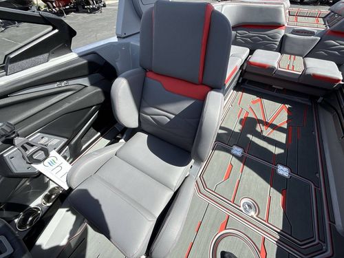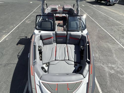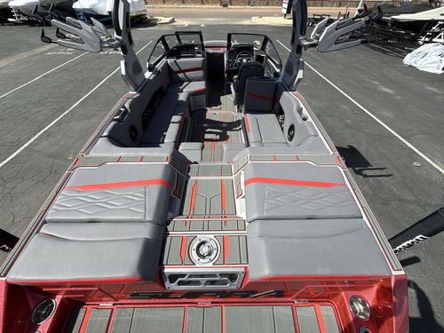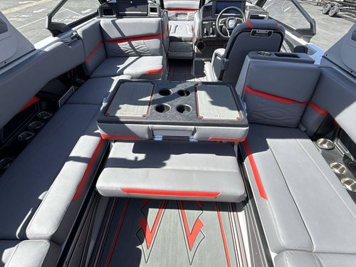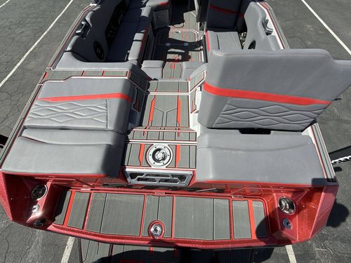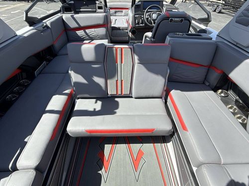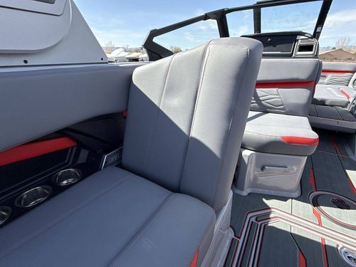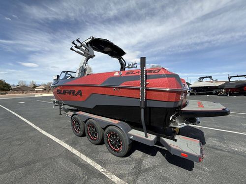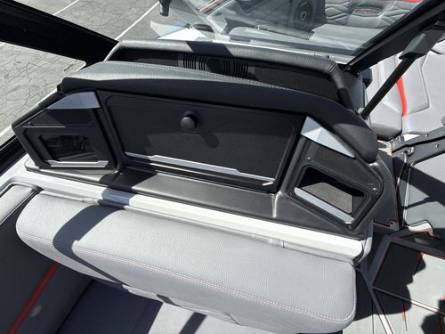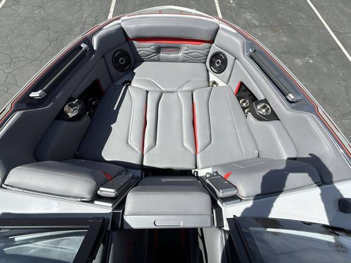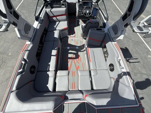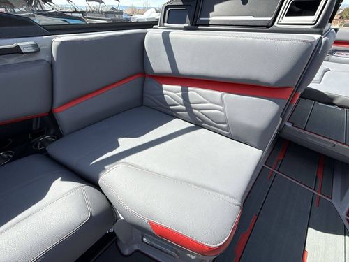 The 2025 Supra SL promises supreme comfort and luxury. Its spacious and plush interior is constructed with premium vinyl, luxurious carpeting, and hand-stitched upholstery. The boat also features a state-of-the-art sound system for an immersive audio experience, plus an ample storage space for all your boating gear.