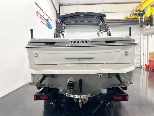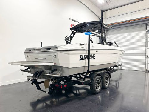 The EZ-V Hull design, as much as 4800 pounds of ballast in six independently pumped ballast locations, the Stinger Wake Plate, and the available QuickSurf System will help you easily achieve a monumental wave out of the box with plenty of performance left over to grow with your skill level. Even spectators outside the wakeboard boat will become believers after witnessing the surfing and wakeboarding superiority of the S240, but they have been staring since it was docked. With two gel coat schemes, 31 colors to choose from, the new Supreme Shine stainless steel tower (SST) or upgraded F-Series Tower by Roswell with gel coat color-matched tower shields, substantial freeboard as well as the perfect combination of hard lines and refined surfaces, the S240 commands every eye at first sight. The new Supreme S240 is the mythical combination of surf, wake, and ride that you have to experience to believe.