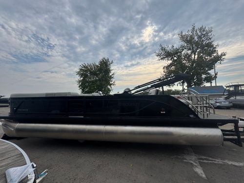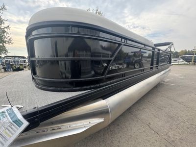 - Midnight Package: Black Skirting w/ Bow Extension, Black Aluminum Rub Rail, Black Rails, Black Canopy Frame, Black Corner Caps, Black Ladder
