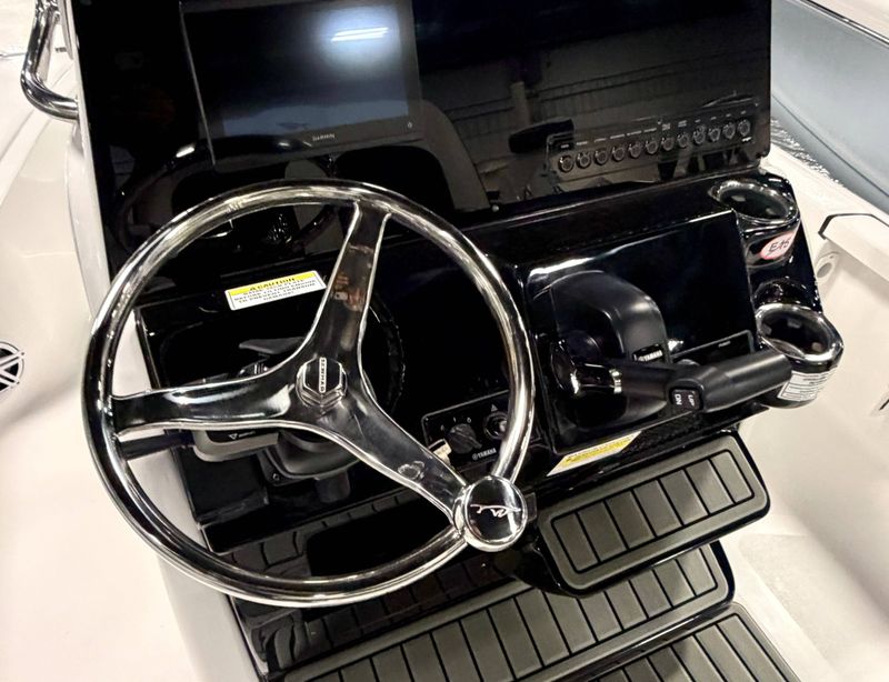 This Tidewater model is built with safety as its core value. The high gunwales and ergonomically designed helm provide the driver with excellent visibility. Its construction includes safety rails, navigation lights, and a self-bailing cockpit, all aimed at ensuring a smooth and safe ride on the water.