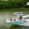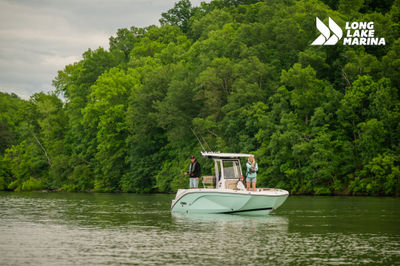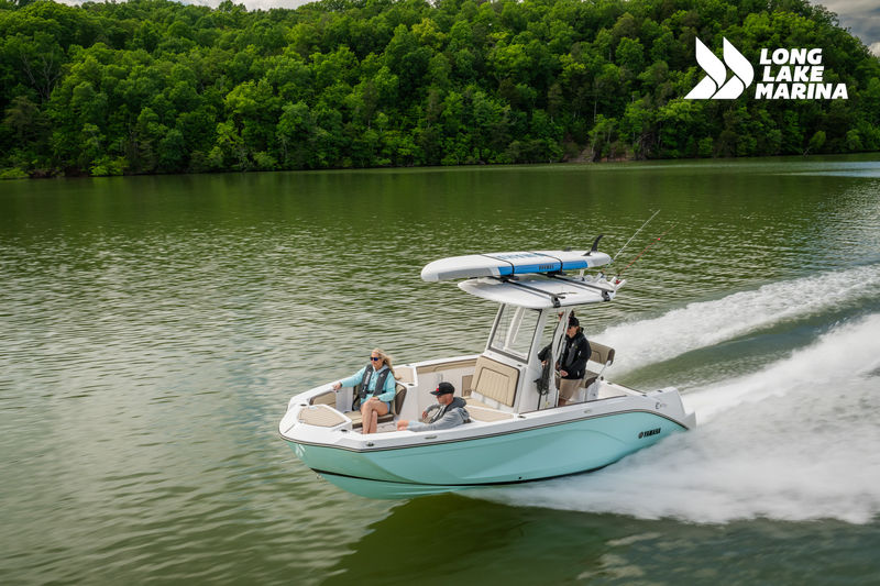 Built for versatility and comfort, the 22-foot 222 FSH Sport E brings together serious performance, fish-friendly design, and premium conveniences. Powered by twin 1.9-liter High Output Yamaha marine engines producing a combined 400 horsepower, it delivers dynamic acceleration, confident handling, and the safety of Yamaha’s jet propulsion system with no exposed propellers. The layout offers seating for up to 10, a roomy 75-gal fuel tank and spacious beam (8′6″), along with fish-ready amenities like a 26-gal aerated stern livewell, insulated fish box, abundant rod storage, and bow seating with storage. Upgrades in the E version add walk-through bow filler platform/table, upgraded upholstery, and snap-in teak-style marine mat flooring. The helm features Yamaha’s Connext system with 5-inch screen, Simrad 9-inch display, dual battery setup, and Quiet Cruise technology to help reduce noise and improve comfort on longer trips. Solid underfoot flooring, reboarding ladder, courtesy lighting, and plenty of secure storage rounds out the features. With blended performance, style, and enhanced value, the 2026 222 FSH Sport E is perfect for those who want more luxury while keeping fishing and fun front and center.