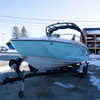 Premium style and advanced features define the 22-foot 222S, built for families who want comfort and capability in equal measure. Powered by twin 1.9L High Output Yamaha marine engines producing a combined 400 horsepower, it delivers strong acceleration, smooth cruising, and the confident handling of Yamaha’s jet propulsion system with shallow-water capability and no exposed propeller. Inside, the spacious cockpit offers upscale upholstery, wraparound seating, and abundant storage, while Yamaha’s signature two-tier swim platform doubles as a lounge and watersports staging area. The helm features Yamaha’s intuitive Connext touchscreen display with wireless charging for seamless control, while the sleek watersports tower with Bimini adds shade and tow-sport versatility. Stylish, powerful, and versatile, the 2026 222S is the perfect 22-foot platform for families ready to elevate their time on the water.