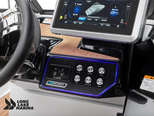 Premium performance meets cutting-edge technology in the 22-foot 222SD, Yamaha’s flagship model in the 22-foot lineup. Powered by twin 1.9L High Output Yamaha marine engines producing a combined 400 horsepower, it delivers strong acceleration, confident handling, and the peace of mind of jet propulsion with shallow-water capability and no exposed propeller. The helm is equipped with Yamaha’s advanced 7-inch Connext touchscreen display with wireless charging, plus DRiVE technology, which uses paddle controls behind the steering wheel for effortless docking and maneuvering in tight spaces. Inside, the spacious cockpit features upscale upholstery, abundant storage, and Yamaha’s signature two-tier swim platform, while the sleek tower with Bimini adds watersports versatility. With luxury finishes, powerful twin engines, and Yamaha’s most advanced tech features, the 2026 222SD is designed for families who want performance and innovation in a stylish, easy-to-handle package.