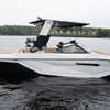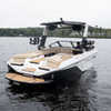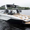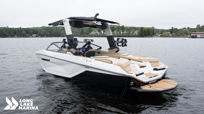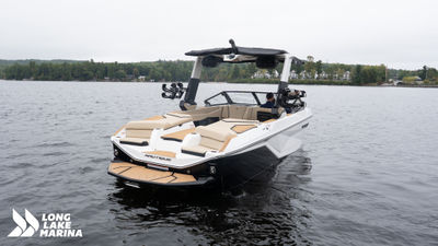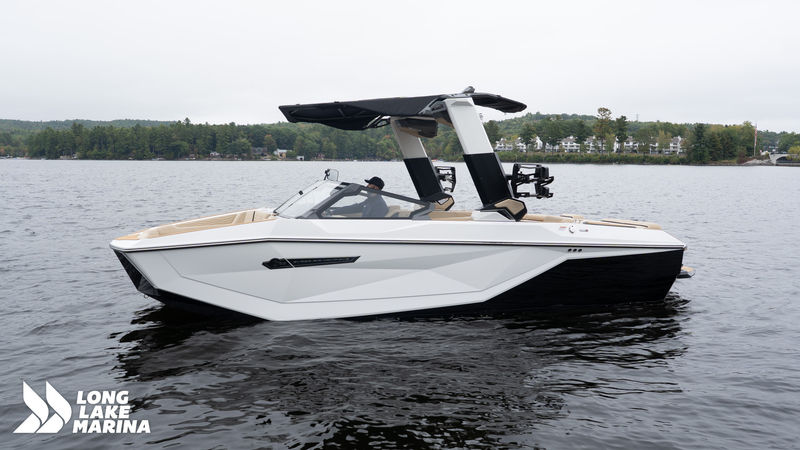 Super Air Nautique Badging w/G-Series Logo: Black Chrome Finish with Illusion Frost Main Stripe Color: MYSTIC WHITE Main Accent Stripe Color: MYSTIC WHITE Rear Accent Color: JET BLACK Hull Bottom Color: JET BLACK FCT-A Color Primary: MYSTIC WHITE FCT-A Platform Color Secondary: JET BLACK NSS Covers: JET BLACK Primary Interior Color: SAHARA SAND Main Stripe Color: JET BLACK TRUEWEAVE Interior Accent Color: JET BLACK TRUEWEAVE Seat Boxing Color: JET BLACK TRUEWEAVE Non-Skid Color: MOCHA BROWN Thread Color: BLACK Interior Badging: Black Chrome Finish with Illusion Frost Interior Acrylic Color: BLACK Enhanced Courtesy Lighting Package (Customized Colors on Illuminated Cupholders, Courtesy Lights and Interior Chromax Badging) Stereo - JL Audio® M6 Series Studio Elite with Wavefront (Includes WaveFront, Dual Subwoofers, Monoblock Subwoofer Amp) Telescoping Flight Control Tower System Including: Nautique Awareness Camera, Strapless Board Racks, Bimini Top with Surf Pockets, 2 Pair 8.8 JL Audio M6 Series Speakers, Premium Swivel Mirror **********Standard Items Listed Below********** Nautique Surf System™ with WAVEPLATE, Wake Package(lntegrated Ballast 2400 lbs) Nautique Configurable Running Surface with Hydro-Plate Nautique LINC PANORAY with Helm Control, Zero Off GPS Speed Control Surf Pipe Exhaust, Power Management Access with Dual AGM Batteries Lighting - Docking Light Array, LED Courtesy Lights Sliding Reversible Stern Seat & Flip-Up Lounge Seat (Port) Transom Seating, Freshwater Engine Flush System MyNautique TM Connectivity Platform Cleats (4), Cooler 1 (Removable), Waste Receptacle GoPro™ Ready Rotating Tow Point, Fire Extinguisher - Automatic Helm Command Center with Wireless Charger