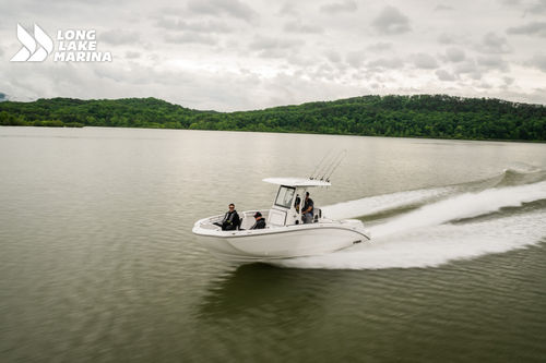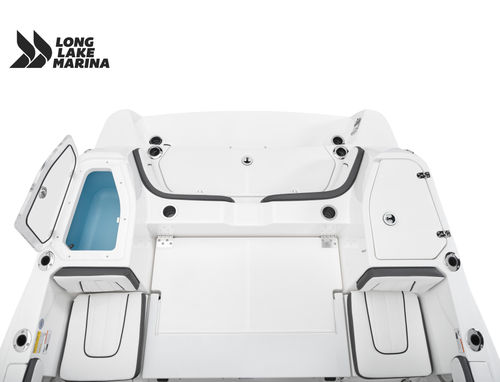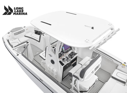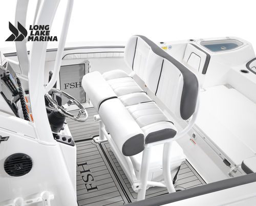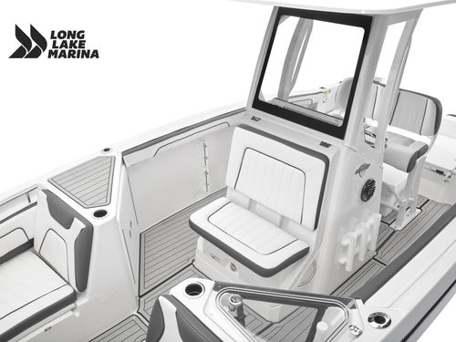 Built to “fish hard and play harder,” the 252 FSH Sport delivers serious power and premium features for anglers and adventurers. It’s driven by twin 1.9 L High Output Yamaha marine engines producing a combined 400 horsepower, giving strong acceleration, reliable cruising, and jet propulsion safety in all conditions. With a length of 24′ 6″, a beam of 8′ 6″, and seating capacity for 12, it balances spacious layout and agility. The deck includes dual livewells (stern and bow), a port-side transparent livewell, insulated fish boxes, and abundant rod storage—along with a lockable console, anchor/rope locker, and a full complement of stainless-steel hardware. Up top, the helm features a Connext touchscreen display paired with a 12-inch Simrad unit for navigation and fish-finding, while cockpit comfort comes from upgraded upholstery, snap-in teak-style flooring, and Yamaha’s Quiet Cruise technology. A generous 111-gallon fuel capacity, large swim platform, and thoughtful features like raw water washdown and convenience lighting add the finishing touches. With this blend of offshore capability, fishing focus, and family-friendly design, the 2026 252 FSH Sport is the go-anywhere center console you’ll want on the water.