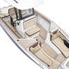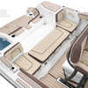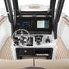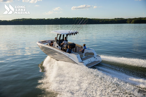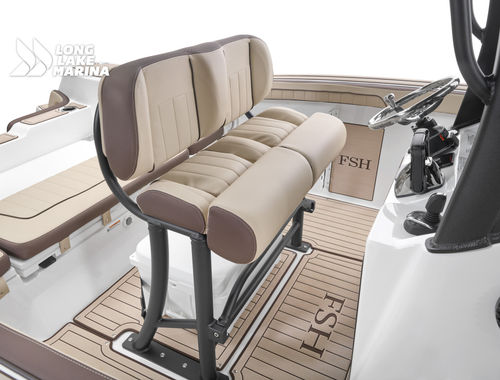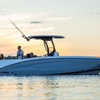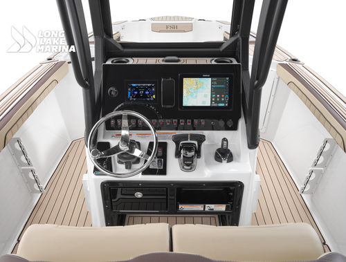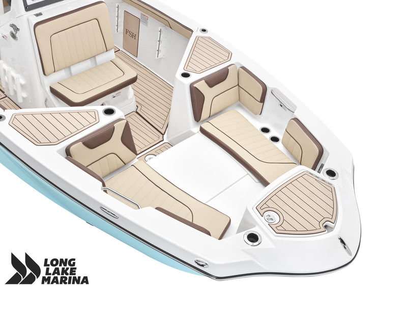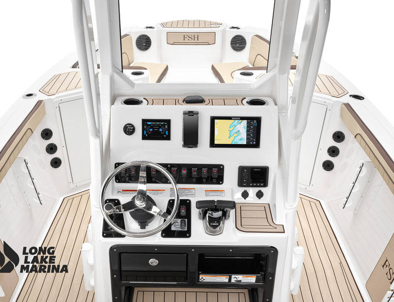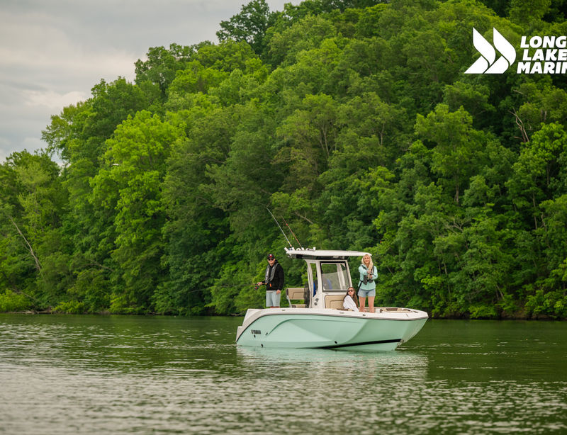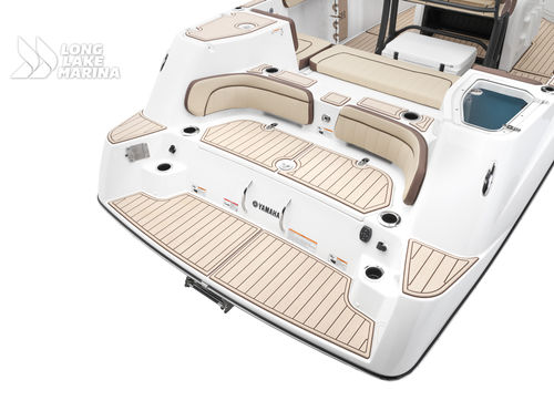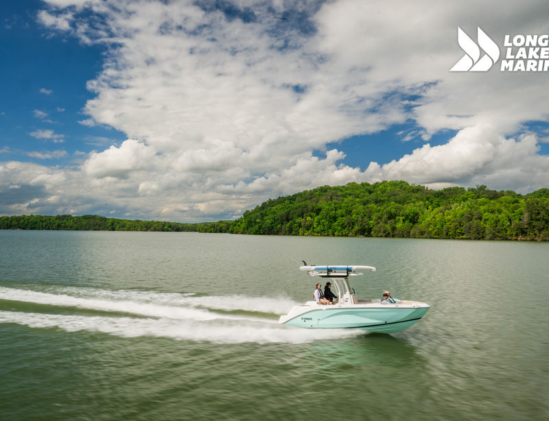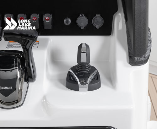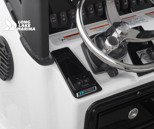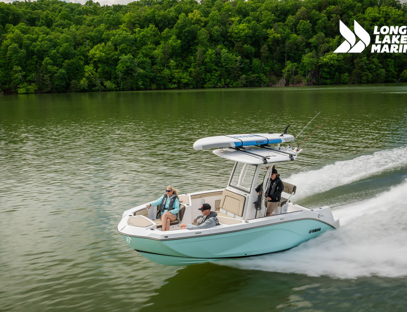 The Sport H brings the next level of control, performance, and luxury to Yamaha’s center console lineup with joystick docking and hardcore fish-ready design. Powered by twin 1.8L Super Vortex High Output (SVHO) Yamaha marine engines producing a combined 500 horsepower, it delivers crisp acceleration, excellent throttle response, and the confidence of jet propulsion with no exposed propeller. The 25′-5″ LOA and 8′-6″ beam provide space for up to 12 people, with a functional cockpit layout that includes a port-side transparent livewell, insulated fish boxes, lots of rod storage (gunwale, under console, hardtop, etc.), a large fuel tank (111 gallons), and a wide swim platform for ease of boarding. The helm features Helm Master EX joystick control, a 12-inch Simrad display, a 7-inch Connext screen, upgraded upholstery, and premium finishes throughout. Built with fishing and family fun in mind, the Sport H also includes snap-in teak-style marine mat flooring, a hard top with rod holders and lighting, tilt steering, and a double battery setup all wrapped in Yamaha’s Quiet Cruise and durable construction.