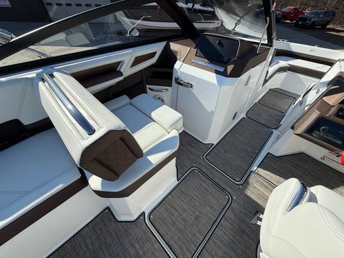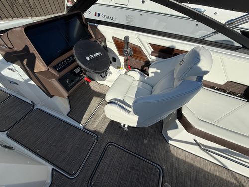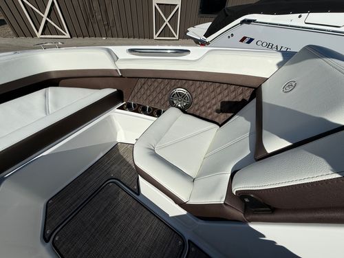 Under the engine hatch, a Volvo V8-350hp delivers confident acceleration, smooth cruising power, and the solid mid-range performance Cobalt owners expect. Whether you’re pulling skiers, cruising with friends, or running across open water, the R6’s hull design provides a soft, stable ride with precision handling.