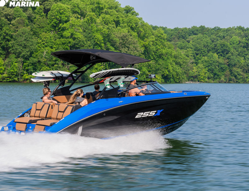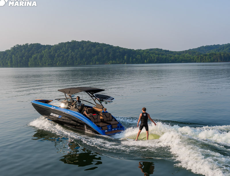 The 295XD redefines what a 29-foot jet wake series boat can be, delivering serious surf capabilities, flagship luxury, and state-of-the-art control all in one bold package. Powered by twin supercharged 1.8L SVHO Yamaha marine engines producing a combined 500 horsepower, it delivers explosive acceleration, deep wakes, and confident cruising. Its yacht-certified 28′5″ hull with 9′1″ beam offers abundant space for family and friends, anchored by standout features like a lockable, plumbed head compartment with sink and countertop, an integrated windlass for anchor deployment, and a capacious fuel capacity of 111 gallons. The helm is centered around a 15-inch Connext touchscreen with maps, wireless charging, and premium instrumentation; paired with Helm Master EX joystick control for precision docking and low-speed maneuvering. On top of that, this model includes the WakeBooster® surf package, watersports tower, and integrated ballast system for customizable surf and wake performance. With its premium finishes, upgraded upholstery, swim-up seating, and thoughtful lighting, the 295XD blends serious performance, elevated comfort, and full surf functionality in Yamaha’s top-tier 29-foot platform.