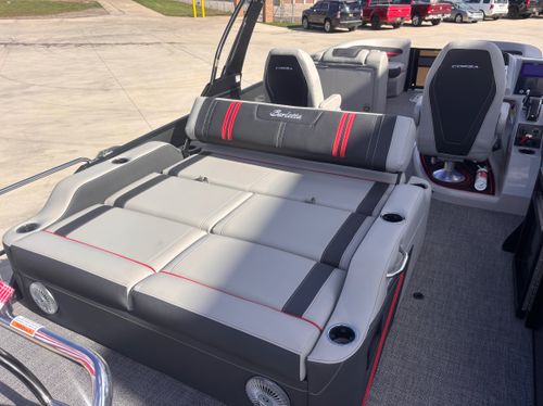- Triple Toon Package: The boat comes with in-floor storage and is Corsa-fitted for enhanced speed and performance.