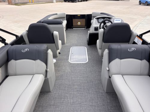 With 25” pontoon tubes, a 20” transom, and a proven hybrid crossmember construction, this boat provides a stable, predictable ride that’s ideal for cruising, relaxing, and casual entertaining. The V.I.P. vibration isolation system helps reduce noise and vibration, so conversations stay easy and the ride stays comfortable.Straightforward Steering. Stress-Free Handling.