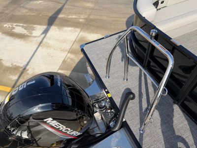 The doggie-dock viewing gate, pet food and water dishes, and stainless stern boarding ladder make it easy for pets and people alike to get on and off the boat safely. Inside, you’ll find practical features like an integrated waste basket, comfortable reclining helm seating, and open deck space that adapts easily to families, couples, or small groups.