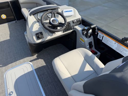At the helm, you’ll find a clean, easy-to-read setup with dimmable gauges, a Hook 4 GPS plotter/fishfinder, integrated phone storage, and a reclining helm seat with swivel and slide. Everything is positioned for comfort and visibility, helping new and experienced boaters feel confident right away.