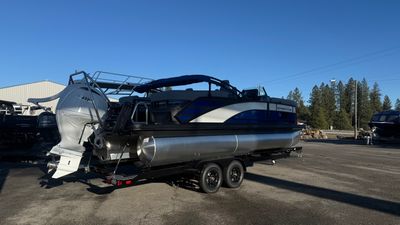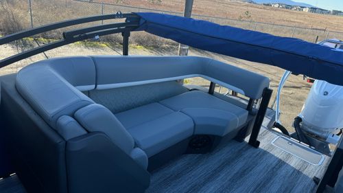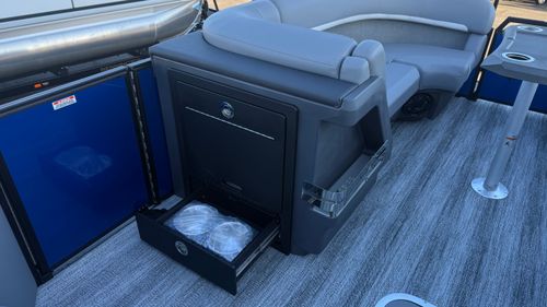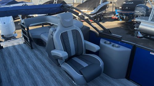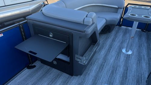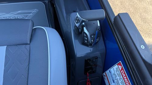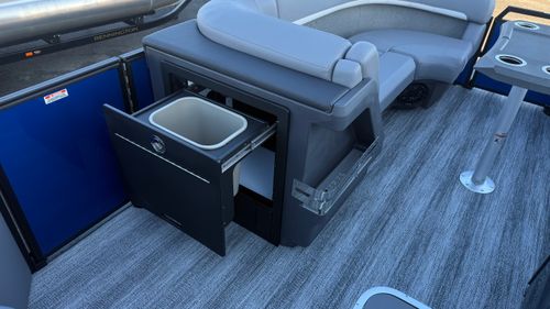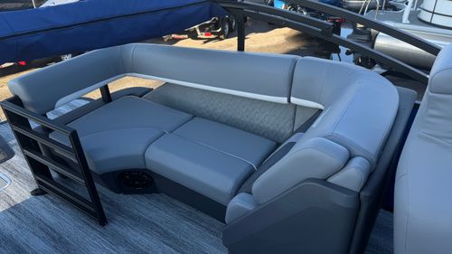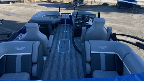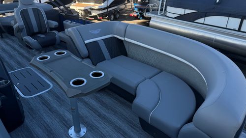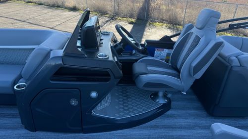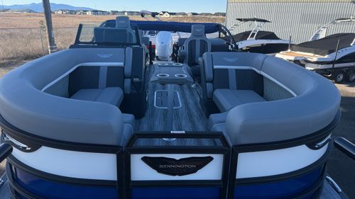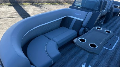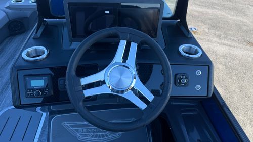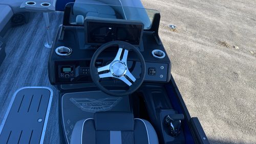 Experience extraordinary with the all-new M Line. Its sleek silhouette, innovative features and customizable design redefine luxury boating. Whether you're looking for an iconic look, a luxurious feel, or a sporty performance, the M-Line has it all to suit your style. Elevate your boating experience with a refined interior. A redesigned helm optimizes space and functionality, while upgraded upholstery and sleek accents provide a modern look and feel. Impress and inspire with our signature Dock Speed design. A swooping bow, sleek rails and iconic Bennington swoosh create a sporty silhouette, redefining pontoon style. Experience effortless elegance. The M Line boasts high-end paints and upgraded finishes that offer lasting brillance in a pallette of contemporary colors. Designed with convenience in mind, it features dedicated spaces for essentials items—such as towels, coolers, bags and more.