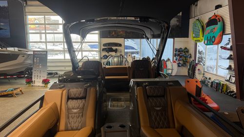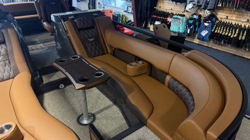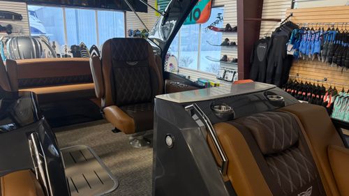 Entertain and exhilarate. Our R Bowrider Line offers thrilling performance for water sports. A step-down U-LoungeTM enables effortless socializing while enhancing the captain's view of the water. Effortlessly dock with integrated viewports, strategically positioned to provide clear surrounding views. Additionally, docking handles enhance stability and control, further simplifying the experience. Enjoy superior visibility and control with our Vantage-Point™ design. By elevating the captain and co-captain, this design makes it easier to dock, drive and converse with passengers. Experience a smoother, more stable ride in choppy conditions. The R Bowrider's V-Hull™ is designed to more efficiently cut through the water, reducing the impact of waves.