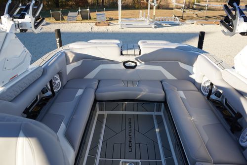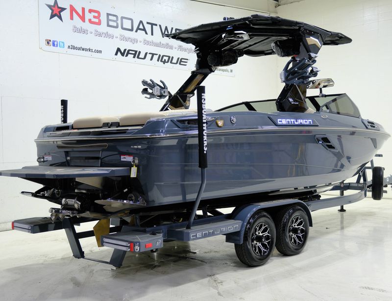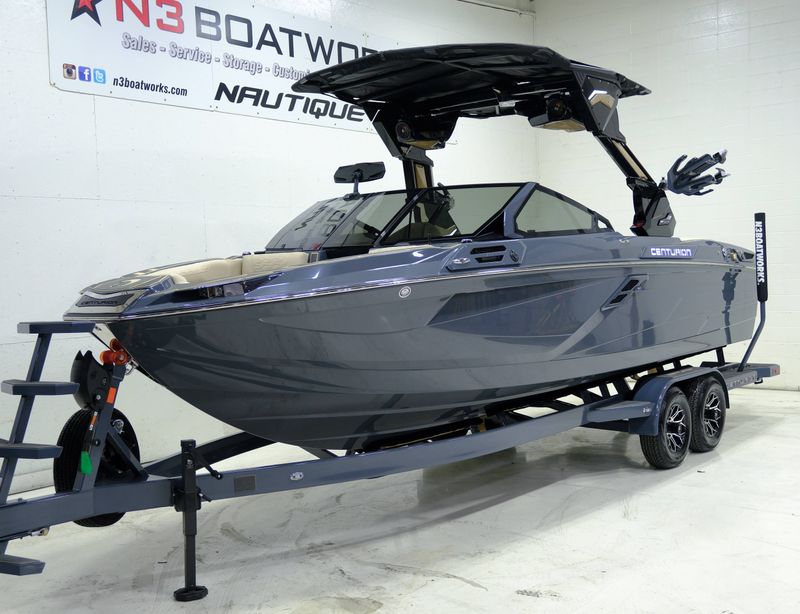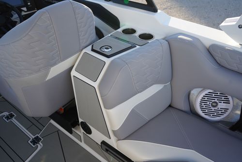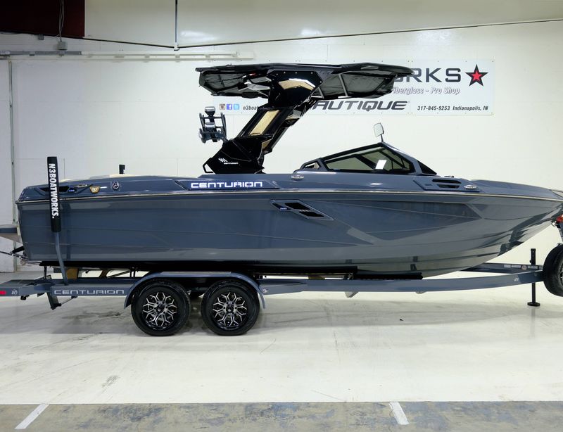The Centurion Ri245 is a 24.5-foot performance surf and wake boat built for advanced riders who want both power and luxury. With up to 5,650 lbs of ballast across seven zones, it delivers long, clean, powerful waves while maintaining a balanced ride. Premium tech like the Captive Touch HD dash, optional Predator Power Tower, and multiple comfort upgrades make it a high-end, high-performance towboat.